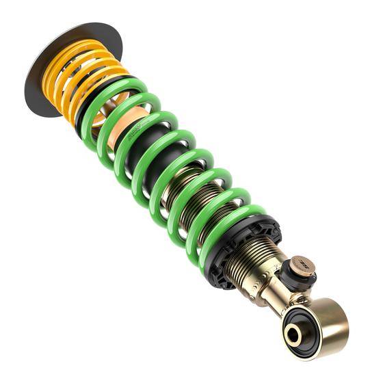 Uit de fabriek is het ST XTA plus 3-gewindefahrwerk uitgerust met KW-dempers die instelbaar zijn in de low- en highspeed-drukstand en in de low-speed-trekstand. Met 24 klikken in de drukstand (low- en highspeed) en 16 klikken in de low-speed-trekstand kun je elke prestatie-aanpassing aan je projectauto doorvoeren. Of het nu gaat om een nagebouwde rolbeugel, ingelaste veiligheidskooi, overstap op PU-bussen of gewijzigde wielbelastingen, het ST XTA plus 3-gewindefahrwerk gaat elke uitdaging aan. Het ST XTA plus 3-gewindefahrwerk inclusief teilegutachten is uiteraard ook voorzien van raceveren en aluminium Unibal-steunlagers.